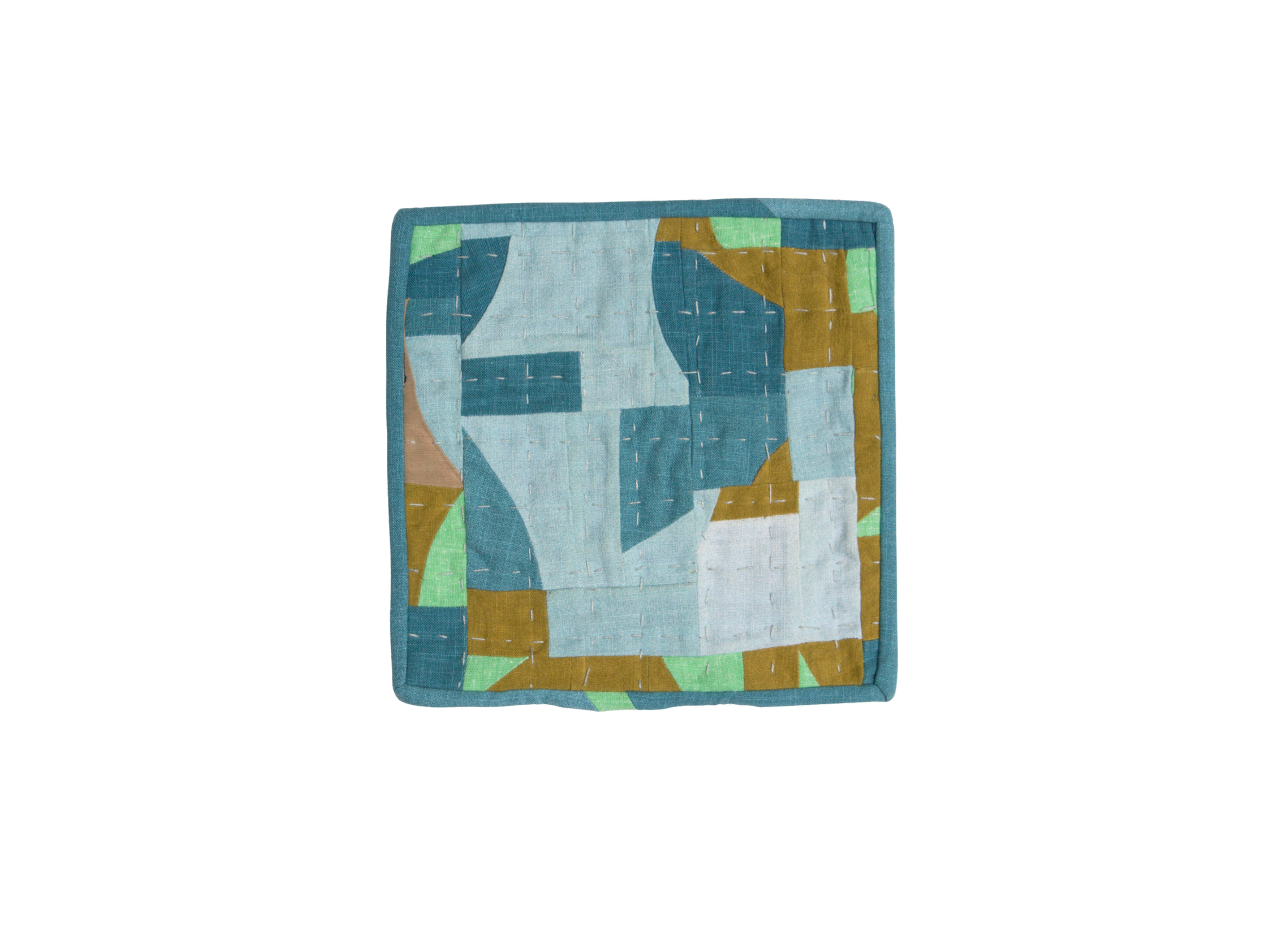 Mini Quilt Green | 2023 | Machine pieced & hand-quilted linen | 8 x 8 inches